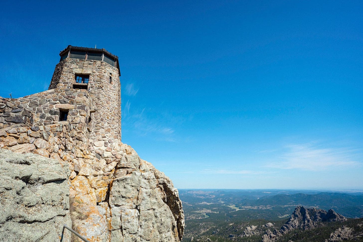 The tower on the top of Black Elk Peak. High point of North Dakota. This is where we learned about the nearby particle physics experiment. Clemmie and I just knew Momo would be most jealous.