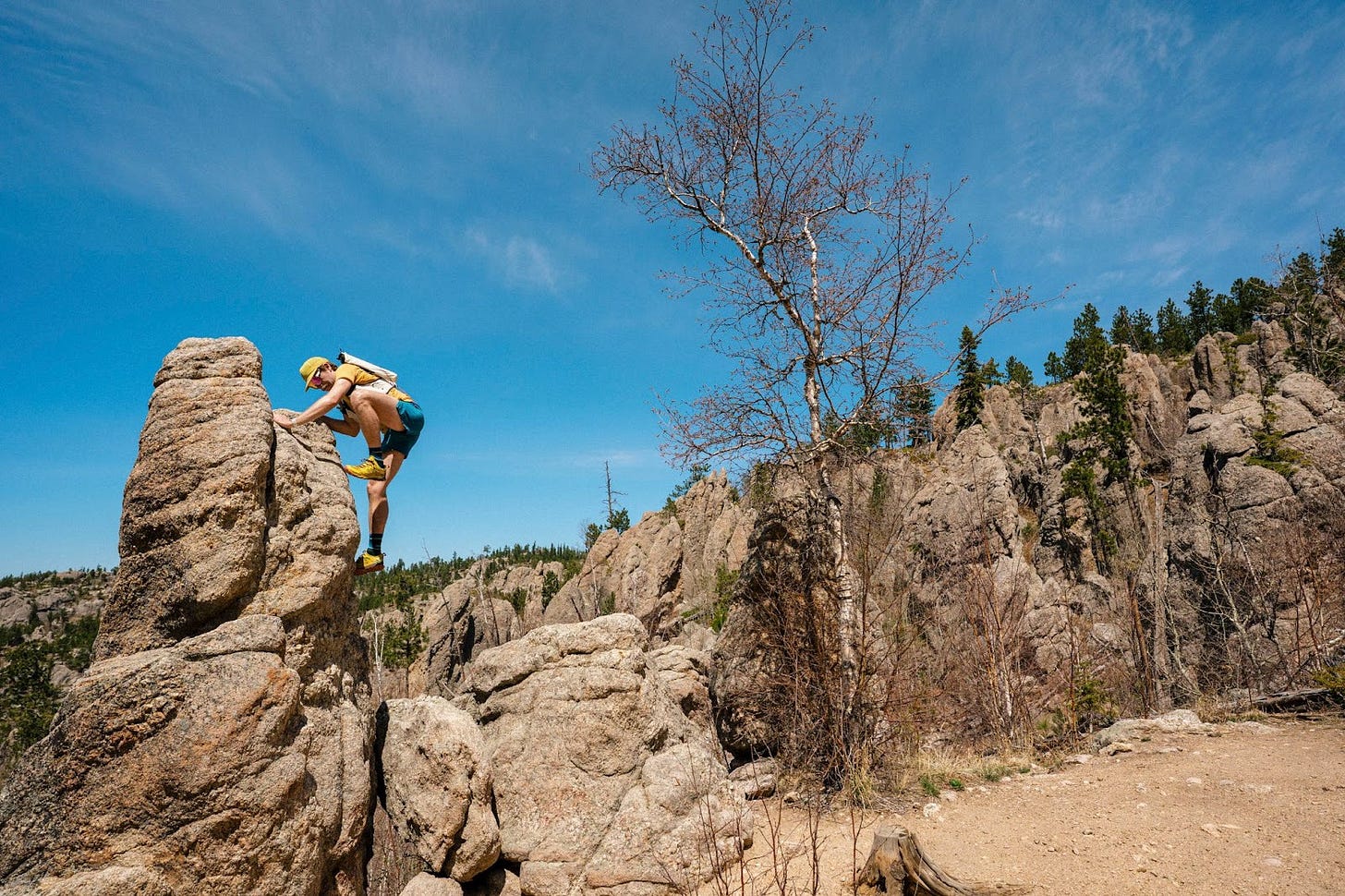 In early May, I ran the Black Elk loop in the Black Elk Wilderness in the Black Hills of North Dakota with Ian and Clemmie as part of The Fifty. The Black Hills are one of the lowest profile adventurelands in the Intermountain West. They’ve got everything — high plains, sweet caves, granite climbing, hot springs, limestone climbing, motorcycles, particle physics experiments, you name it! And great trail running on horse trails and singletrack.