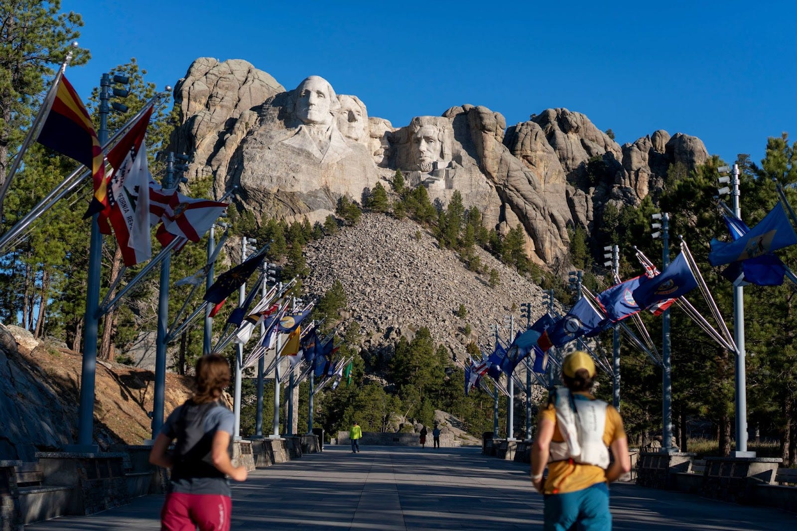 The run starts with a little detour to Mount Rushmore. Optional, but probably a better way to see it than driving there. Start early, and you can enter before it opens and avoid the tourist hordes.