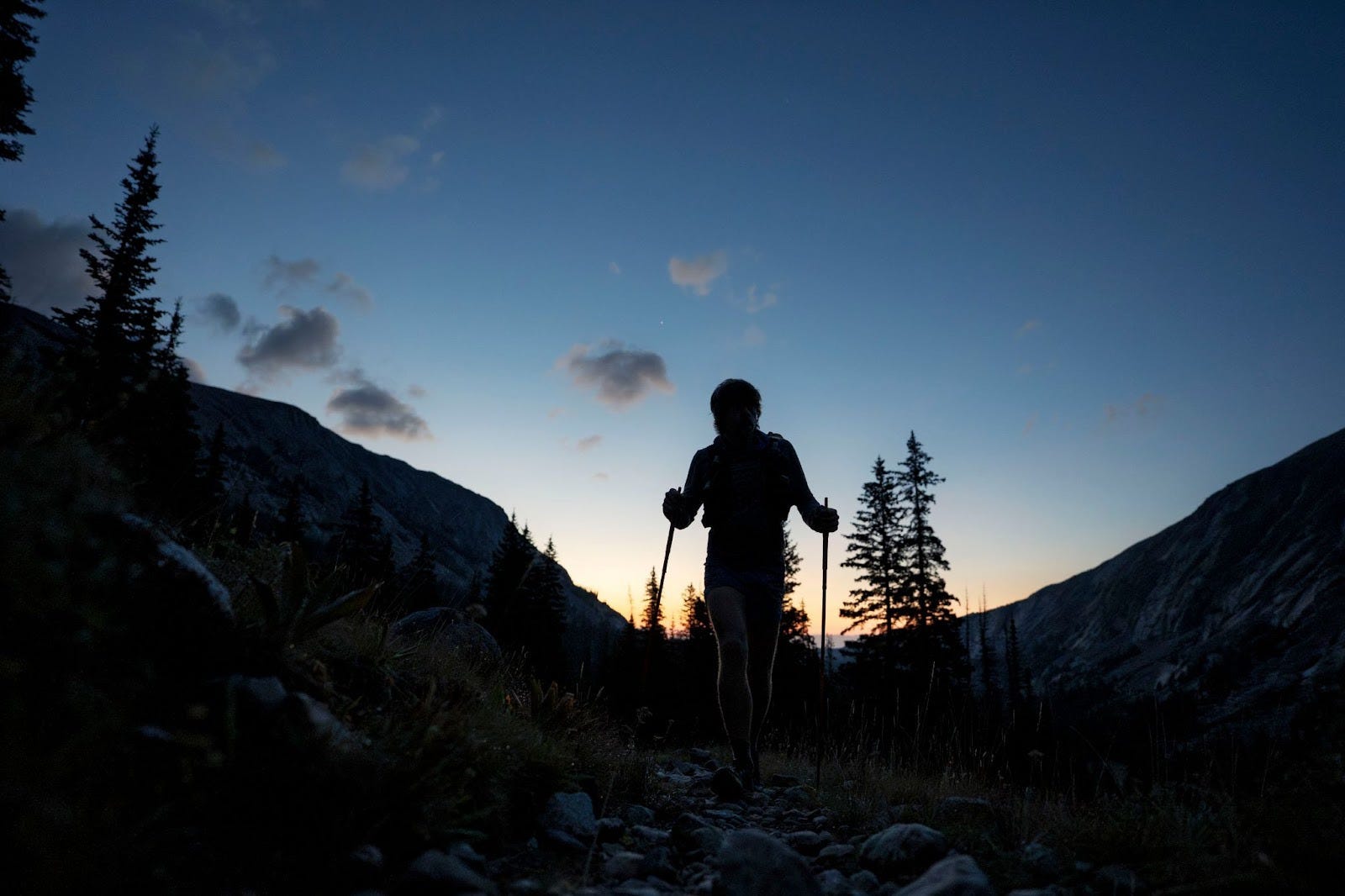 For most of the night, we followed singletrack and granite cairns through alpine tundra and evergreen forests. This brought memories of nighttime hikes and runs through the White Mountains, where I cut my teeth. It’s funny how similar the scents of pine and feel of granite underfoot can be in different places.