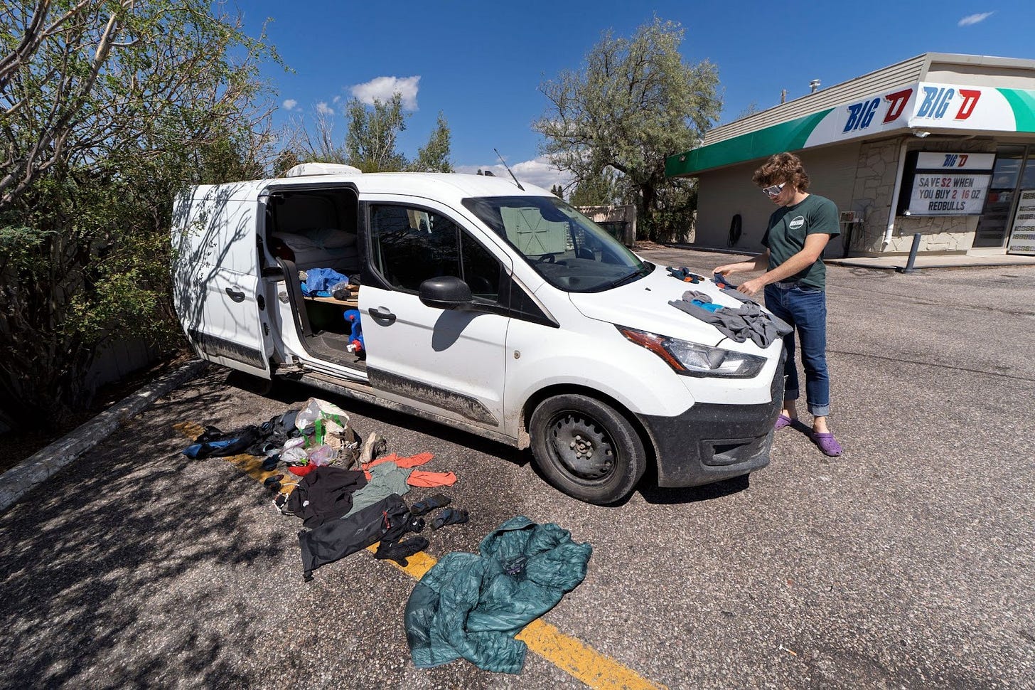 After we crested the final pass, we ran down to Coffeen Park and still had 4 miles to go to the car. We got drenched in a storm, waded up a steep trail through ankle deep runoff, and both of us were moderately hypothermic and shivering by the time we made it to the car. The next day on the way home, we needed a few drying stops.